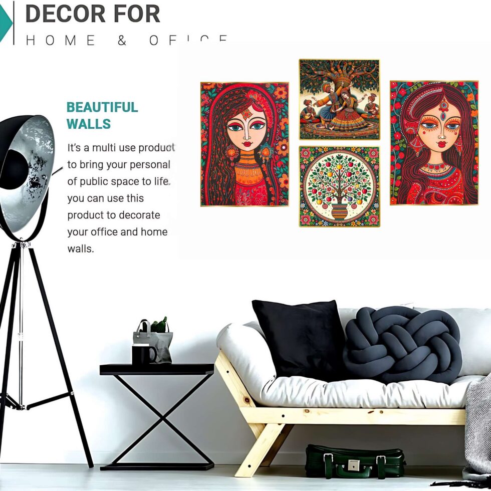 wall paintings, designed to elevate any room with their vibrant traditional charm. Perfect for a variety of settings, these intricate pieces are ideal for wall decor, whether you’re seeking artwork for your living room or bedroom. Our collection includes bold and large wall paintings that create a striking focal point, especially as big wall paintings for the living room. paintings are perfect for home decoration, seamlessly fitting into any space as wall art for living rooms or framed wall paintings for bedrooms. Whether you choose wall paintings with frames for the living room or bedroom, these pieces add an elegant, cohesive touch to your decor. Beyond living areas, these paintings also make beautiful kitchen wall decor and versatile wall hanging options. Enhance your living room wall decor with framed wall art that complements any style. Choose from various formats, including wall paintings golden frame,allowing you to customize your space with ease. Each painting blends traditional and abstract styles, offering both framed wall paintings and wall art decor that fit effortlessly into any room. Explore the beauty of art and bring a touch of culture and sophistication to your home with these exquisite wall paintings for decoration.