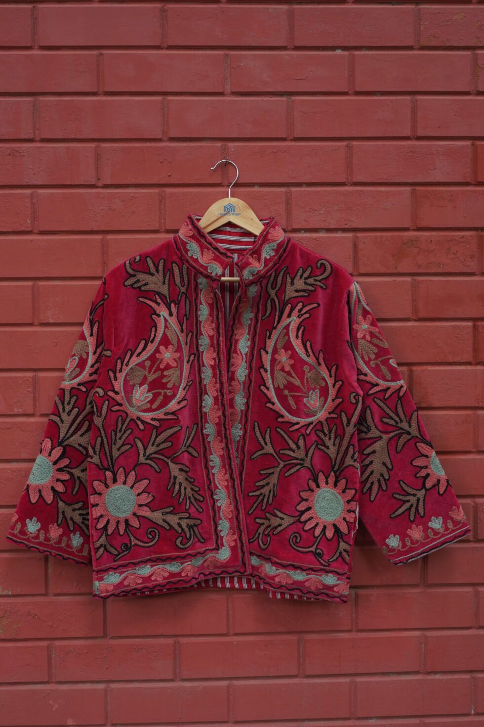 Luxurious velvet jacket featuring intricate Suzani embroidery. Perfect blend of elegance and tradition — ideal for festive and ethnic occasions.